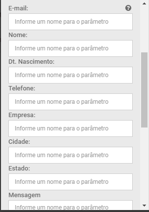Nº6– Nos campos abaixo do que foi inserida a URL, é aonde você deverá informar os parâmetros referentes aos dados dos leads que você deseja enviar para o sistema externo.