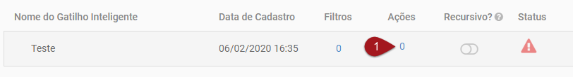 Nº1– Acesse o gatilho inteligente que você irá configurar o HttpPost e clique em cima da numeração do status Ações.