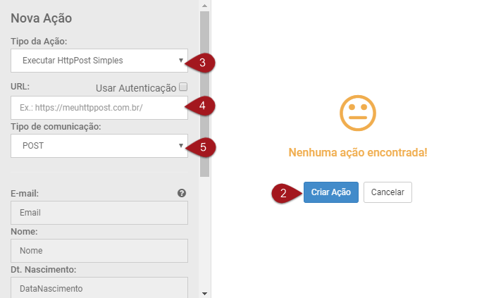 Nº3– Em Tipo da Ação escolha a opção Executar HttpPost