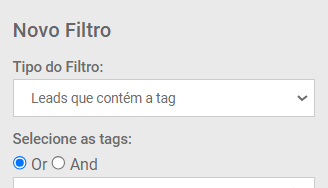 Observação: A opção Or e And só estão dispostas apenas no tipo de filtro Leads que contém a tag