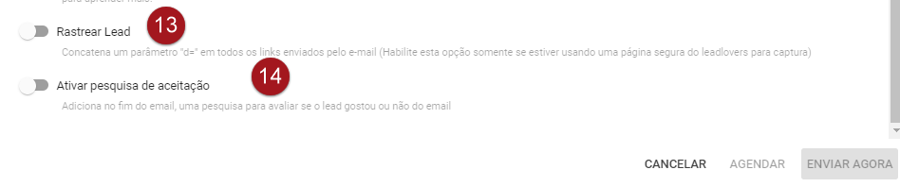 Nº 13 – Ativando a opção Rastrear Lead um parâmetro “d=” será concatenado em todos os links enviados pelo e-mail (habilite esta opção somente se estiver usando uma página segura do leadlovers para captura)