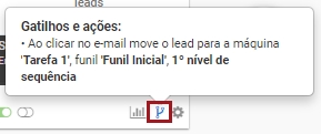 O ícone de gatilho ficará azul assim que a sua ação for definida e, ao passar o cursor do mouse sobre ele, será possível ver a ação que será aplicada ao lead.