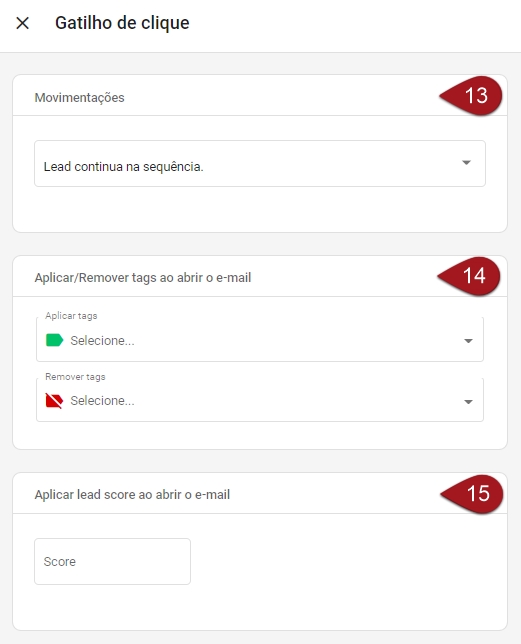 Nº14– Além disso, você pode definir tags para serem adicionadas ou removidas dos leads que abriram o e-mail.