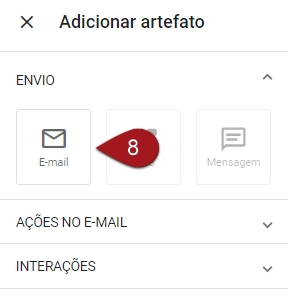 Nº8– Na aba lateral que abrir, em “Envio”, escolha a opção “E-mail”. Construa o seu e-mail da maneira que preferir, utilizando os nossos modelos ou começando do zero.