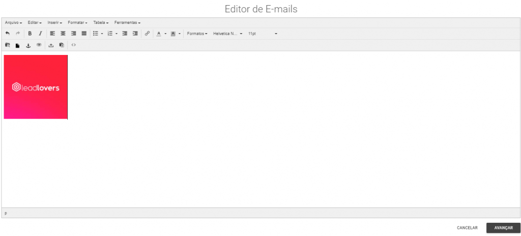 Objetivo: Mostrar o passo a passo de como inserir uma imagem no corpo de um e-mail criado na Leadlovers.