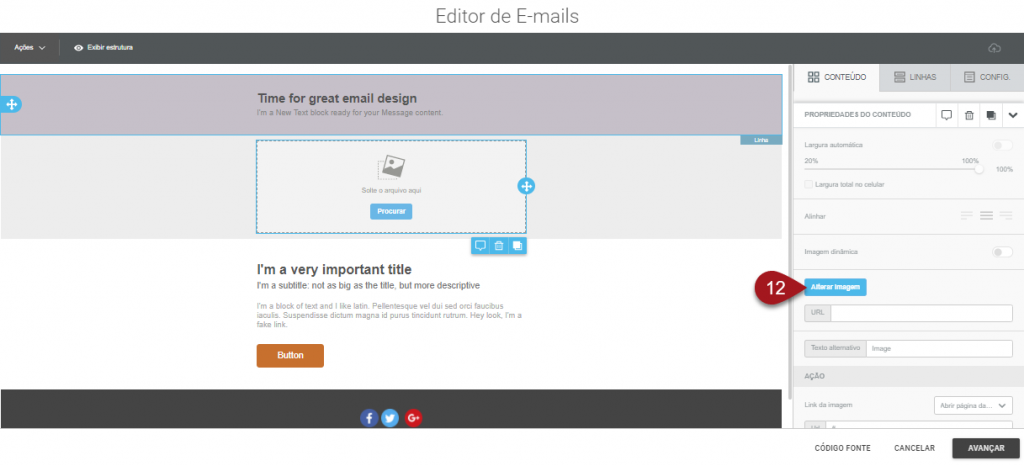 13– Clique no botão Carregar se você deseja importar uma imagem do seu computador.