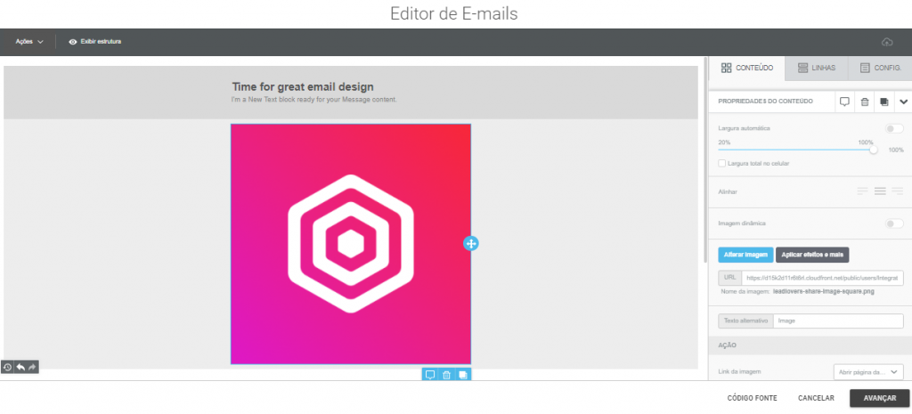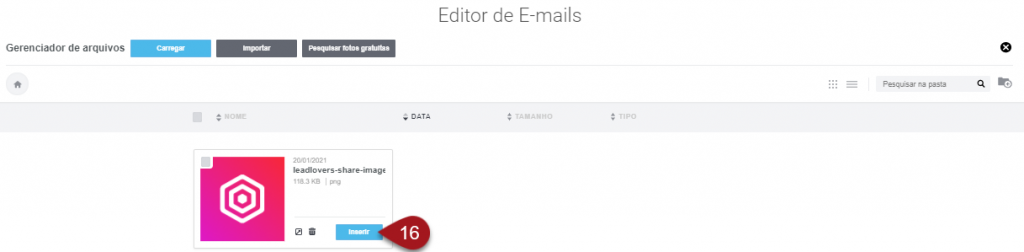 3– Clique no botão ”leadlovers images” para escolher a imagem que será inserida no corpo do e-mail.