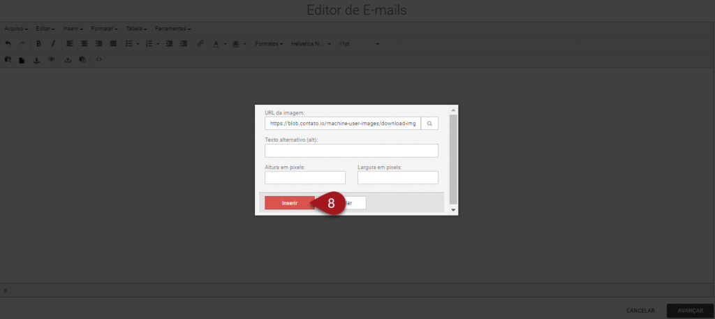 7 – Agora que a imagem escolhida por você já foi exibida no painel, basta clicar sobre ela para que ela seja inserida no corpo do seu e-mail.