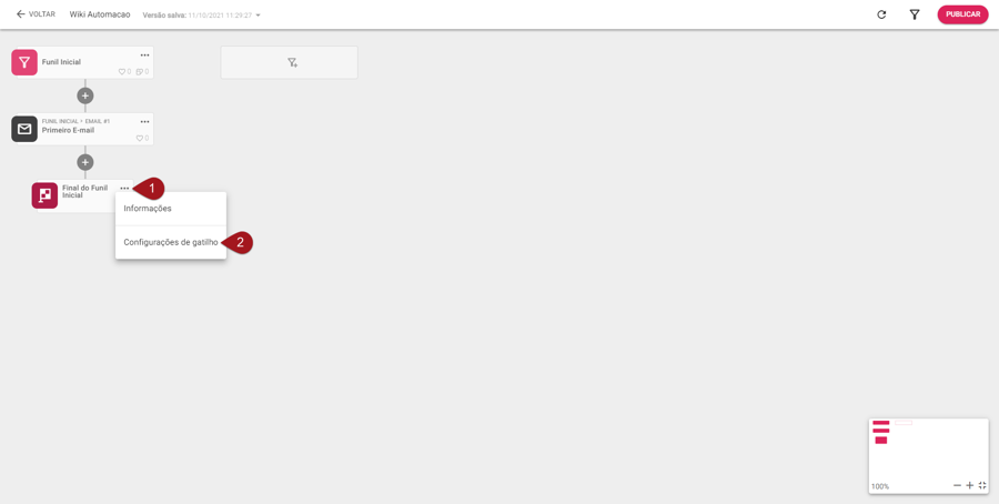 Nº1– Dentro da edição da sua automação, clique nos três pontinhos no final do funil.