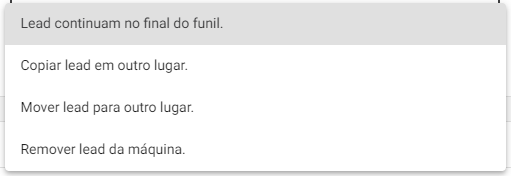 Mover lead para outro lugar: o lead é removido de onde está e adicionado na máquina, funil e sequência escolhidos.