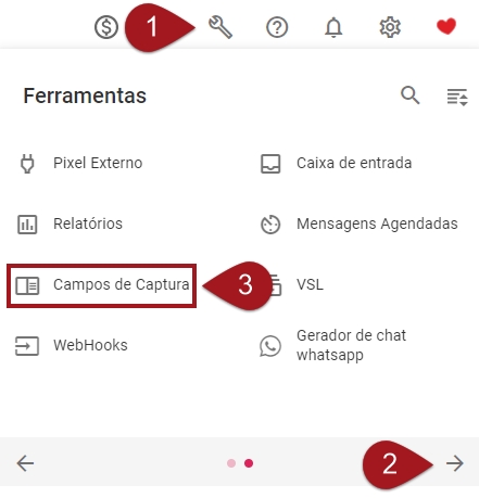 Nº1– No menu superior direito da sua conta, vá até o ícone de ferramentas.