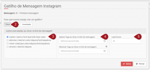 Objetivo: Ensinar como configurar os Gatilhos de Mensagem na Máquina de Instagram. Para que serve: Com os Gatilhos de Mensagem, é possível fazer movimentações, aplicar/remover tags e adicionar lead score dependendo da ação do lead na mensagem.