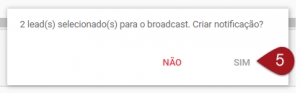Atenção: Ao enviar o Broadcast dessa forma, todos os leads com o status “Ativo” da sua conta serão automaticamente selecionados. Caso queira enviar apenas para alguns, siga para o tópico Selecionando alguns leads da conta.