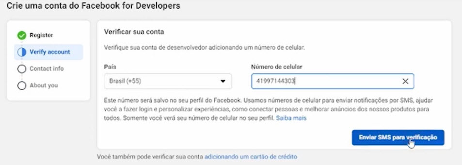 N3º – Adicione um numero de telefone celular valido para fazer a verificação via SMS.\