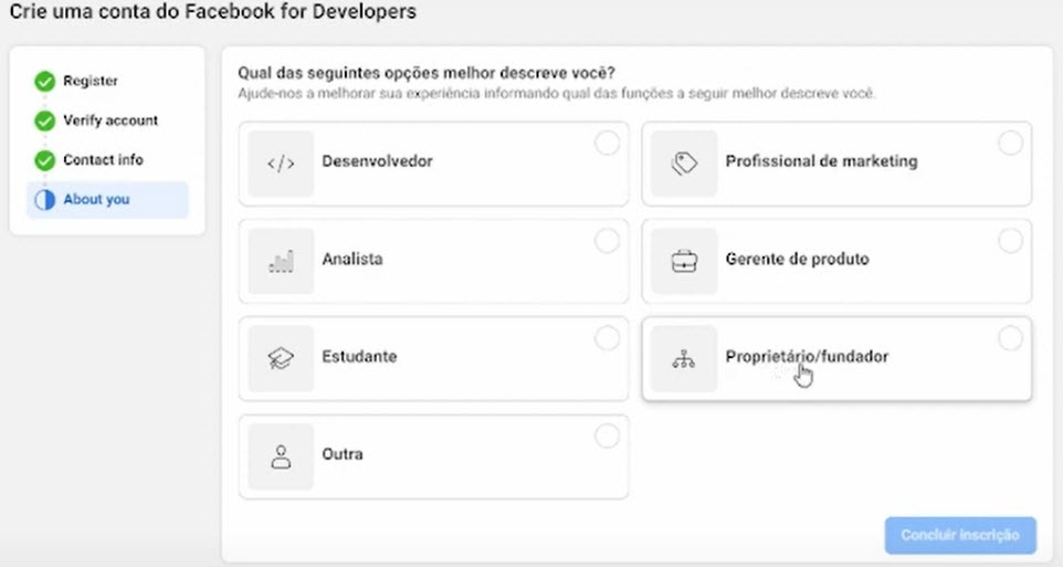OBS: Caso você ainda não tenha uma conta no developers, você cairá nessa tela. Preencha todos os dados solicitados para criar a sua conta de desenvolvedor.