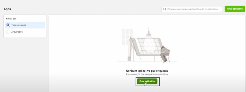 N1º – Logo na tela inicial, clique no botão “Criar Aplicativo” para prosseguir.