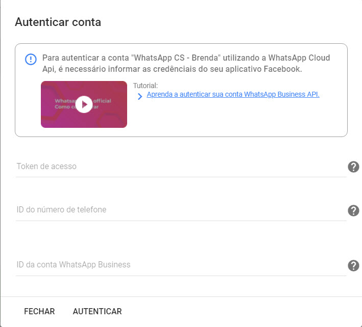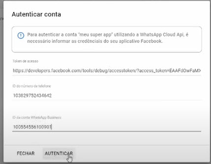 Caso você queira utilizar uma conta já utilizada no Business anteriormente, é preciso desvincular o número no business antes de criar essa autenticação.