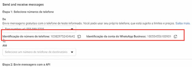 9- Nessa tela, copie o ID do telefone e adicione na leadlovers, o mesmo para o ID do WhatsApp business.