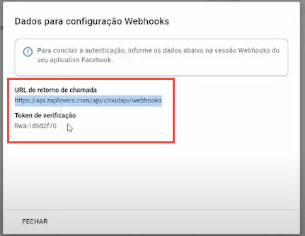 2- Em Webhook, clique em Editar e adicione o URL de retorno da chamada.