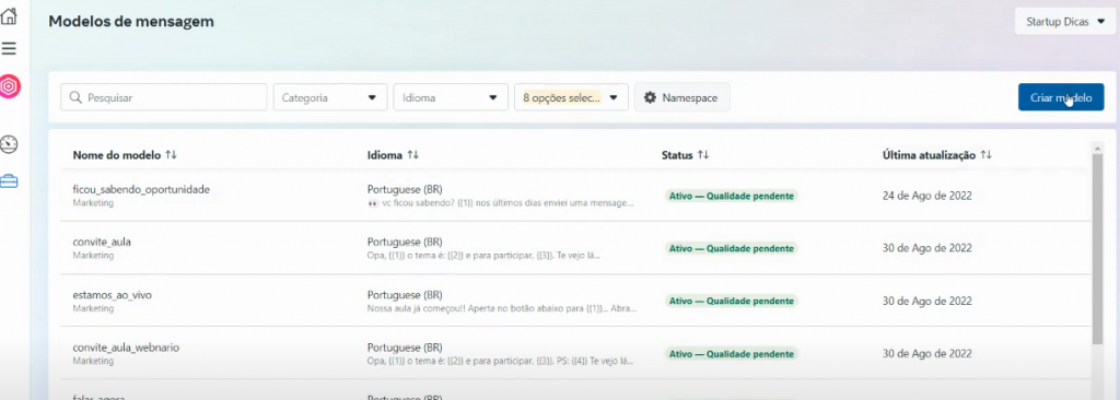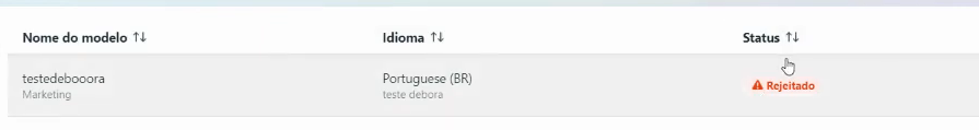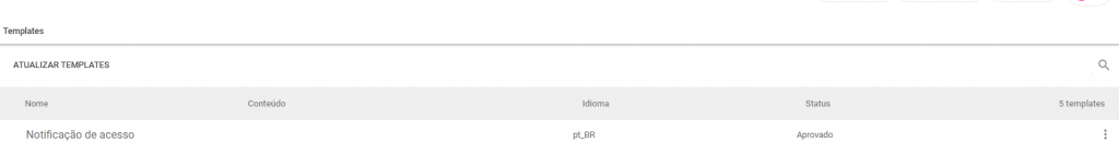 Nessa tela é possível ver todos os templates criados anteriormente (aprovados ou não aprovados);