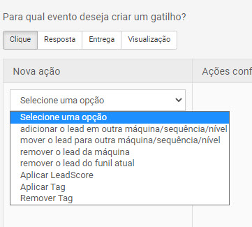 Gatilhos de clique: Será ativado quando o lead, clicar em um link ou botão