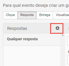 1 – Após escolher gatilho de resposta, na parte superior clique no símbolo de [ + ]