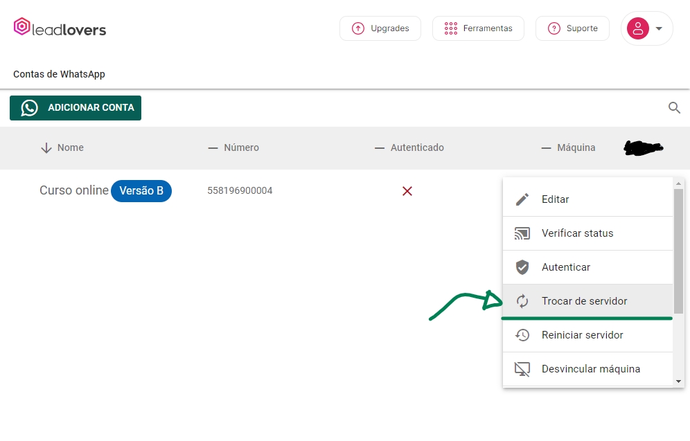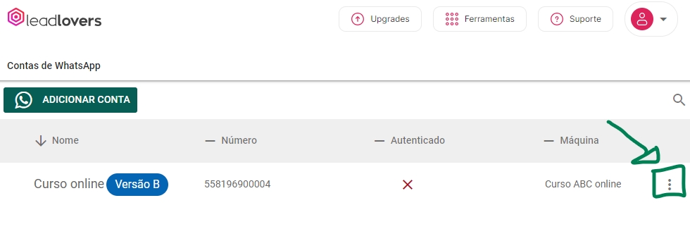 Acesse a tela Contas de whatsapp: https://app.leadlovers.com/v4/whatsappaccounts
