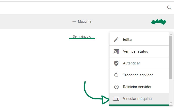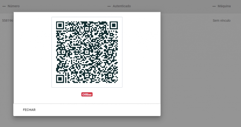 Realize esses 3 passos nessa ordem: 1. Troca do servidor; 2. Autenticar: conectar via QRcode; 3. Vínculo com a máquina.