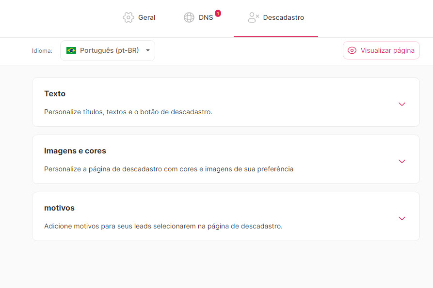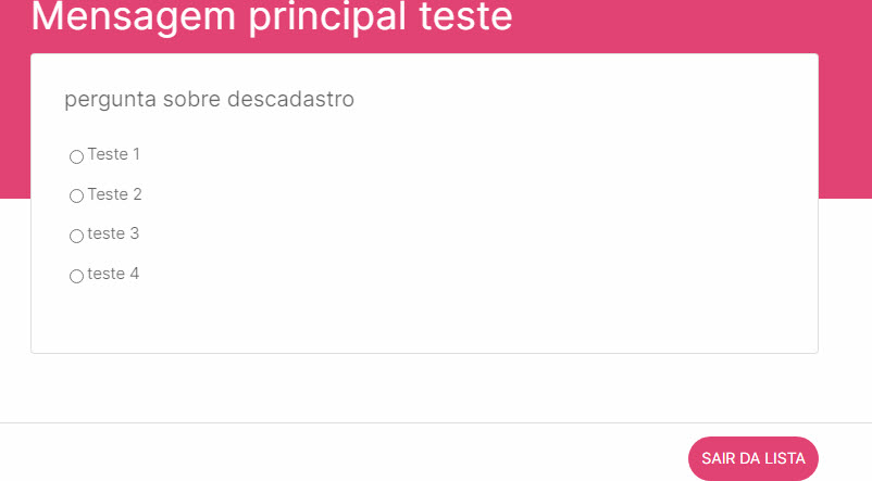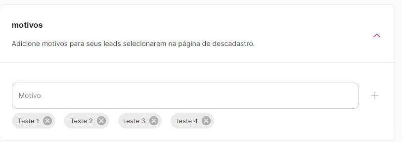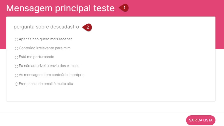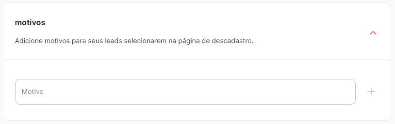 Esse link direciona o lead a uma página, onde ele poderá informar o motivo do descadastro e se descadastrar automaticamente.