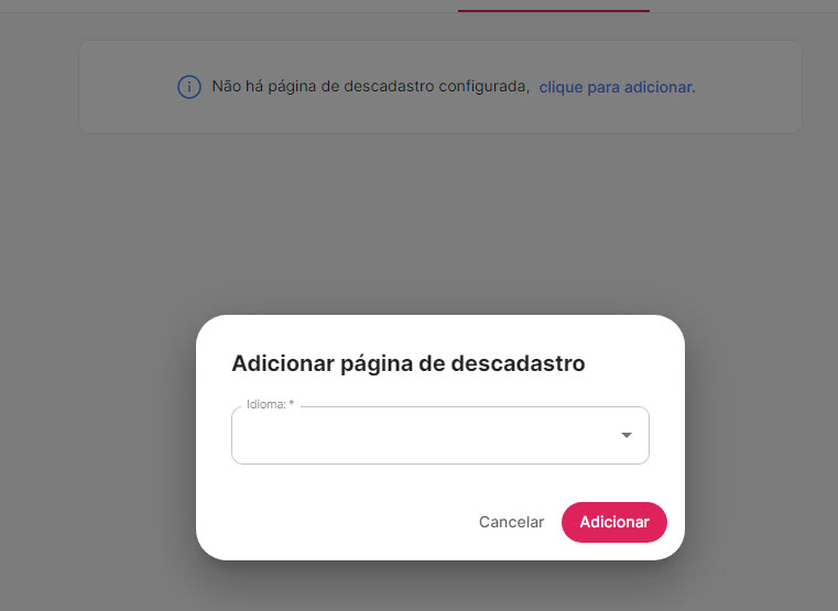 Ex:”Não há páginas de descadastro configurada”. neste caso basta clicar no link indicado.