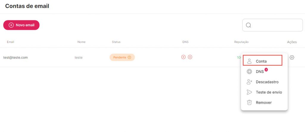 Nº2– Localize a conta desejada e clique na engrenagem > depois clique descadastro