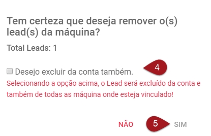Nº4– Marque a opção “Desejo excluir o lead de sua conta”. Lembrando que onde esse lead estiver ele será removido, independente da máquina.