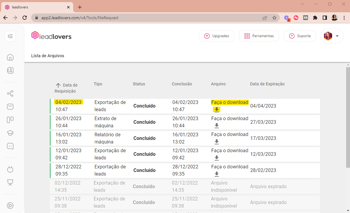 Objetivo: Mostrar o passo a passo de como fazer a exportação (download) dos leads da sua conta. Para que serve: Ao exportar seus leads, é possível armazená-los localmente no seu computador, seja para ter um backup de controle ou para removê-los da conta sem perder a lista. Requisito Obrigatório: 1. Possuir leads na conta leadlovers.
