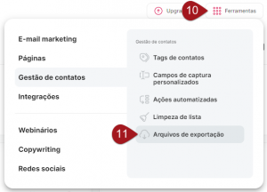 Ferramentas > Gestão de contatos > Arquivos de Exportação