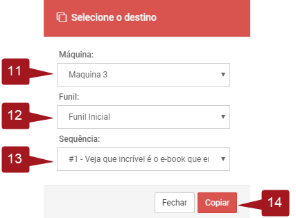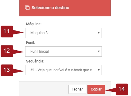 Nº 11 – Em seguida uma aba será aberta em sua tela e no primeiro campo você deve selecionar a Máquina que vai copiar o lead. Observação: Aqui pode ser a mesma Máquina na qual o lead já está.