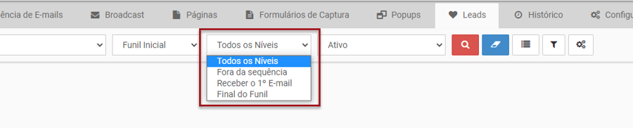 Nº 4 – Depois de ter escolhido o funil escolha o Nível, ou seja, em qual e-mail/posição do funil o lead está.
