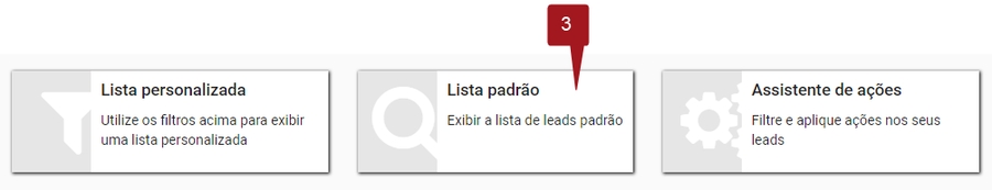 Nº 3 – Em seguida clique em Lista padrão (campo central) e os leads serão listados na tela