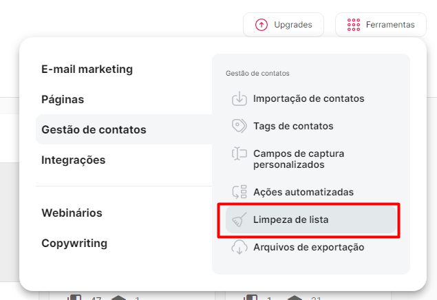 Vá em Gestão de contatos e localize e clique em Limpeza de Lista.