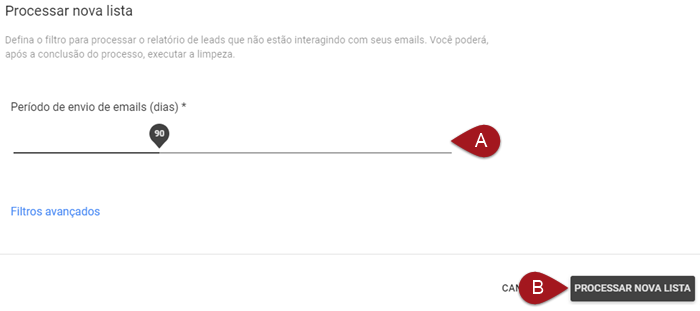 Após definir os Filtros Avançados da forma que deseja, clique no botão Processar nova lista para seguir.