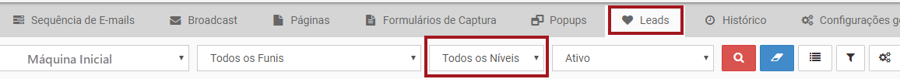 Para verificar se isso ocorreu com você, dentro da máquina na aba leads, você consegue filtrar pelo Nível** do e-mail.**