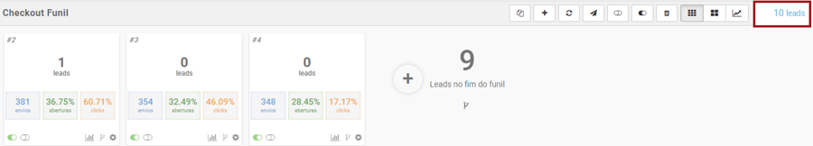 Veja o exemplo acima : O campo selecionado indica que o funil possui 10 leads, porém no e-mail possui apenas 1 lead.