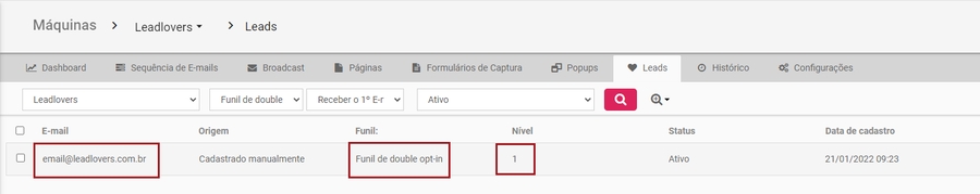 Nº5– Depois de ter escolhido o funil, escolha o “Nível”, ou seja, em qual e-mail/posição do funil o contato se encontra atualmente (nesse caso, fora de sequência).