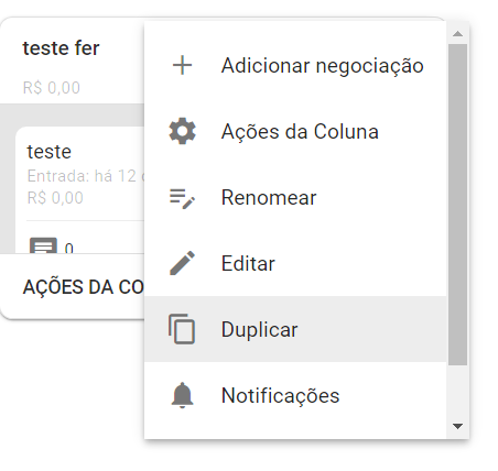 Objetivo: Mostrar como funcionam as ações da Coluna no CRM.