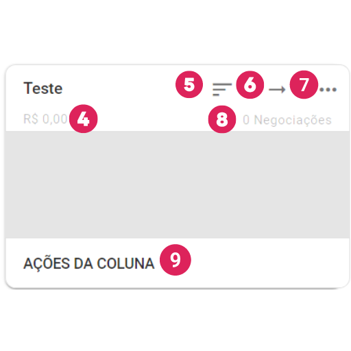 Como mencionamos, as colunas são as etapas do seu processo de negociação. Onde seu lead/cliente será inserido dentro da primeira etapa do seu CRM.