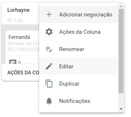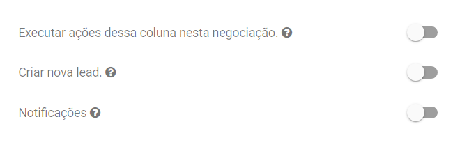 Notificações: Possibilita a ativação de notificações via e-mail, em caso de movimentações dos leads.