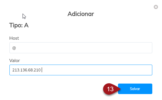 Host: insira o símbolo de @ (arroba). É essa informação que irá indicar que aquela entrada é referente ao domínio principal.