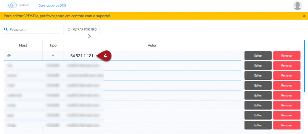 Muito provavelmente no seu Builderral existirá essa entrada do www. Localize a entrada cujo Nome é www e confirme se os Dados estão com o seu domínio sem o www. Se a entrada já estiver configurada dessa forma, pule para conferir o Resultado.