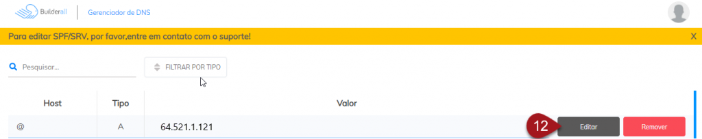 Nº12– Localize a entrada do seu domínio principal, aquela do passo 04, e clique em Editar.