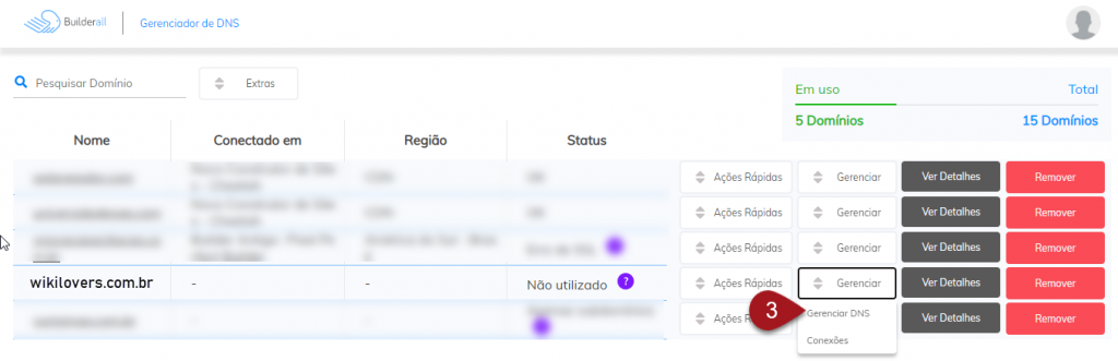 Nº3– E então clique em Gerenciar DNS.