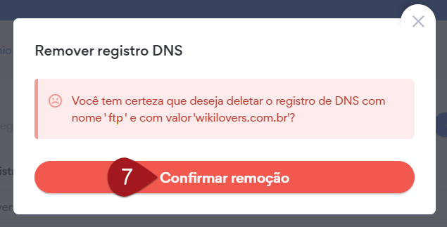 Nº7– Abrirá um pop-up confirmando se deseja remover o registro, clique em Confirmar remoção.